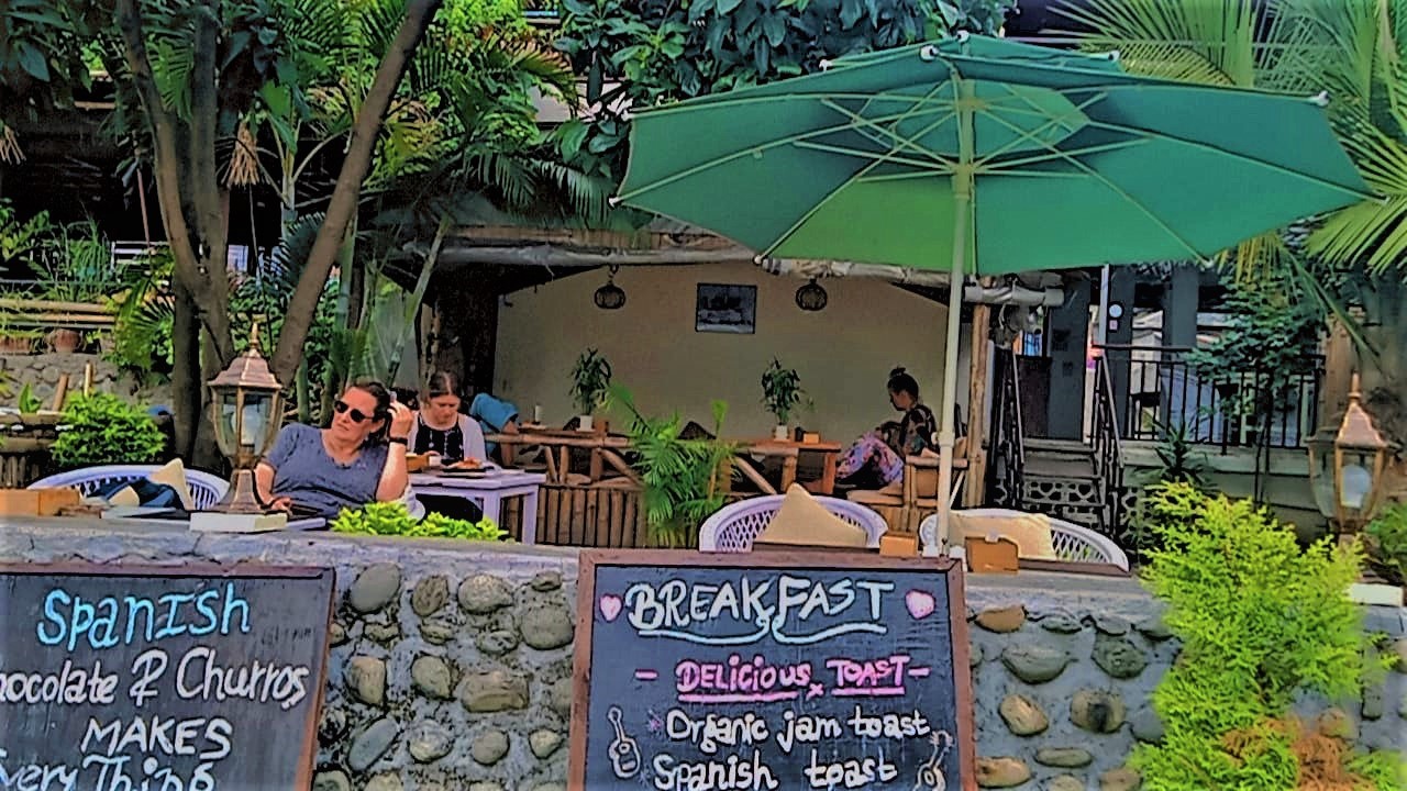 Una de las cosas que adoro de mi trabajo, es simplemente, poder observar a la gente sentada, en nuestro rincón, escibiendo, o con la mirada hacia el lago, con las montañas de fondo, y bajo nuestro «árbol bebé»…bueno, aunque ya no es tan bebé